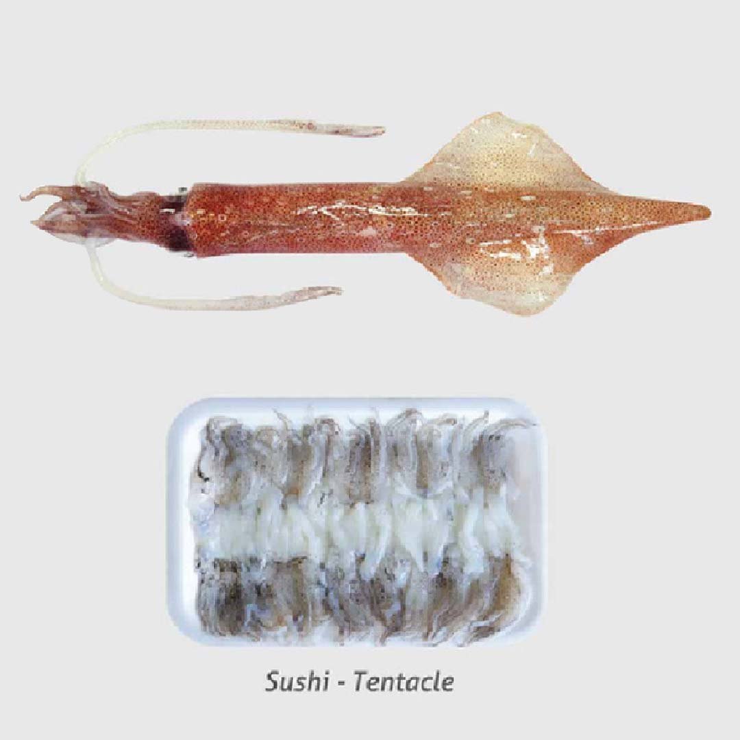 Tender squid tentacles, cleaned and prepared for sushi and grilling.