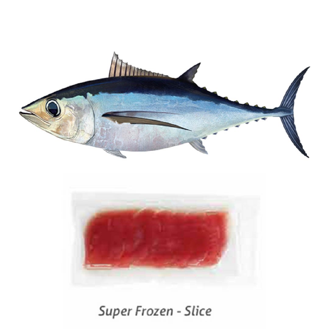 Pre-sliced tuna at -45°C, ensuring premium texture and color for sushi & sashimi.